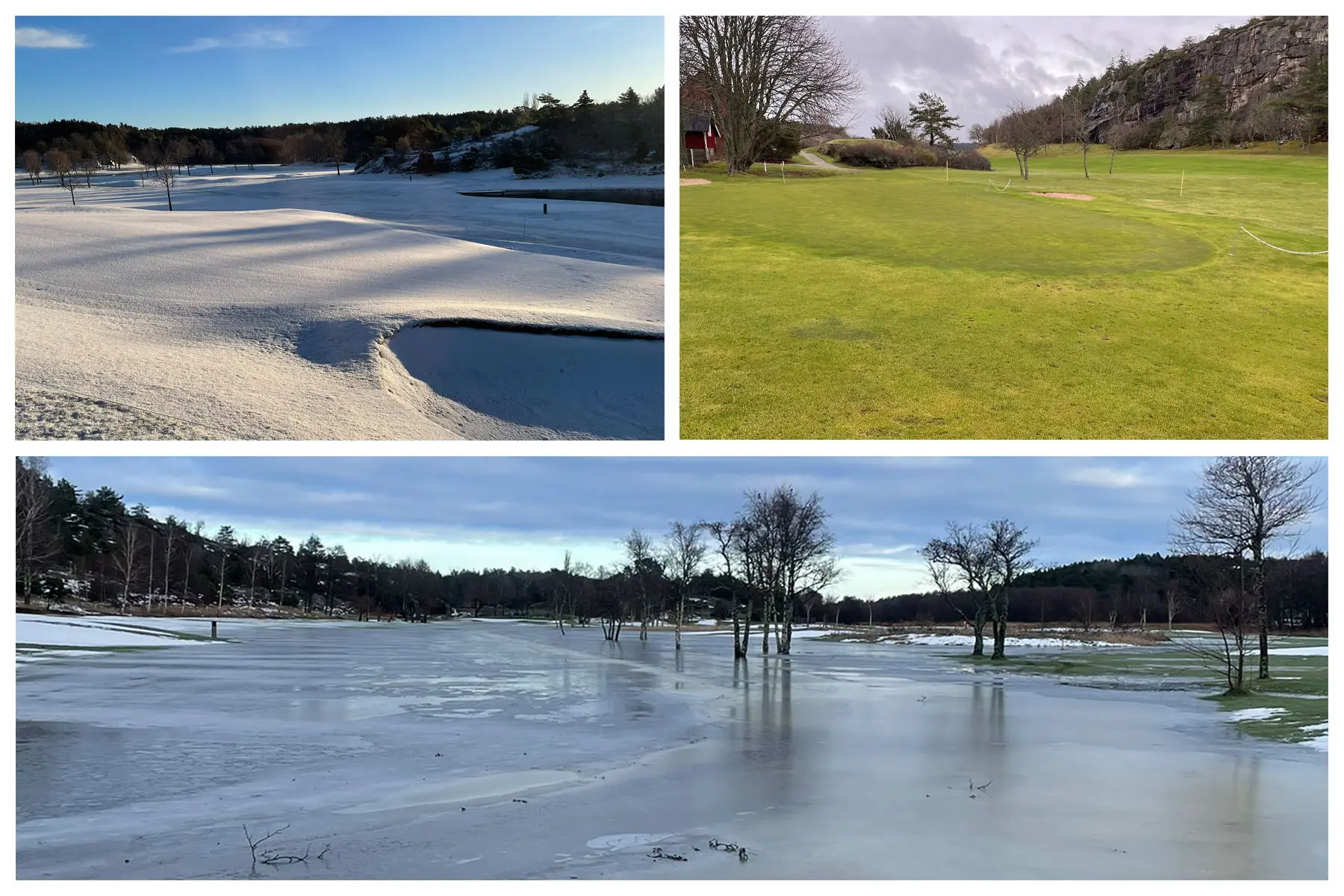 Ja kylan har verkligen lagt sig stabilt över oss, inte så kallt på termometern men jädrar vad det är kallt i vinden. Allt är ju på gott och ont. Nu när vi ligger konstant på minussidan så är fördelarna att inget växer, varken skadesvamp, mossa eller gräs. Så allt blir liksom på paus. Nackdelen är att vi inte har något skyddstäcke i form av snö. När spelytorna ligger oskyddade mot den kalla vinden sugs grönskan och energin ur gräset sakta men säkert. Men förutom detta ser banan väldigt bra ut och väntar bara på lite sol och värme.