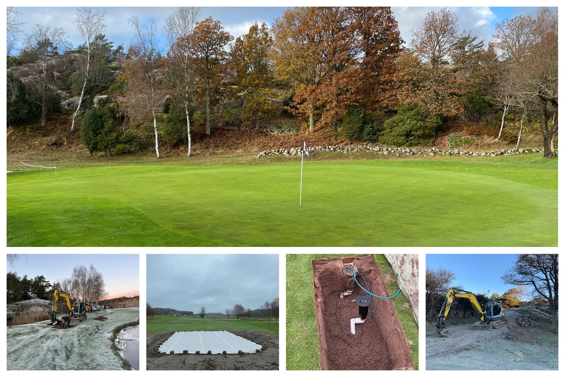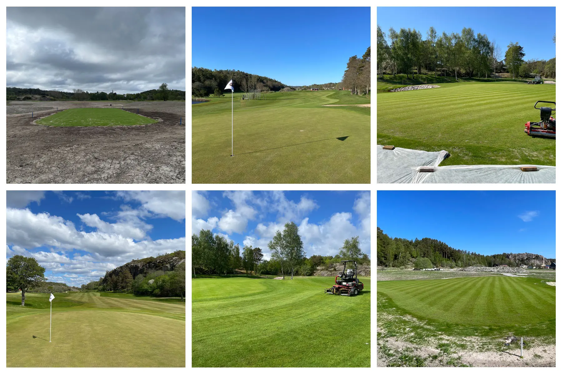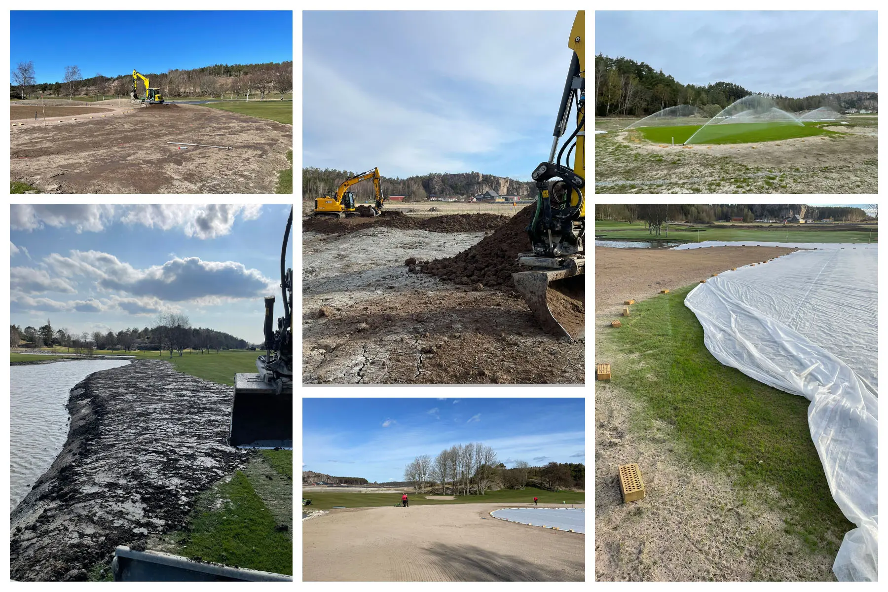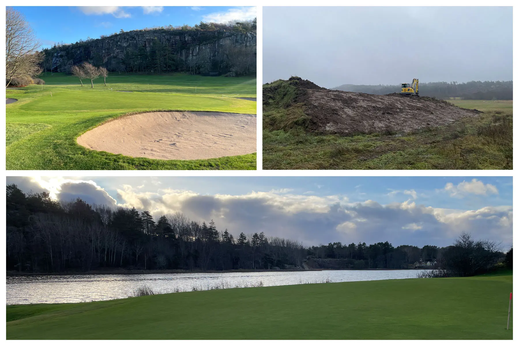 Då är vi snart i mål och skall i år öppna den nya bansträckningen på hål 11 och 12. Förhoppningsvis sker detta i maj om vi har vädrets makter med oss. Ligger några arbetstimmar bakom projektet, så det är en njutning att se vad vi har skapat ur platt och tråkig mark. Vi har gjort allt själva med undantag för inhyrning av maskiner vid de större grävningarna och massförflyttningarna. Detta har givit oss 2 nya greener och greenområden, 4 nya tee, 2 nya dammar, fina stensättningar, nya fairwayytor, nya kullar, nya vägar, ny bevattning, nya dräneringar, nytt landskap och ny del av golfbanan som kommer ge oss nya upplevelser.