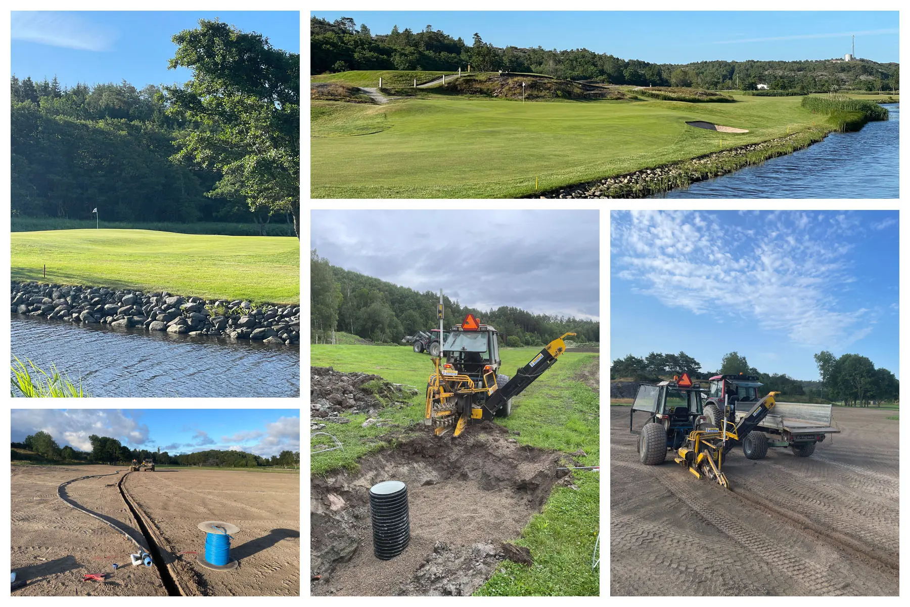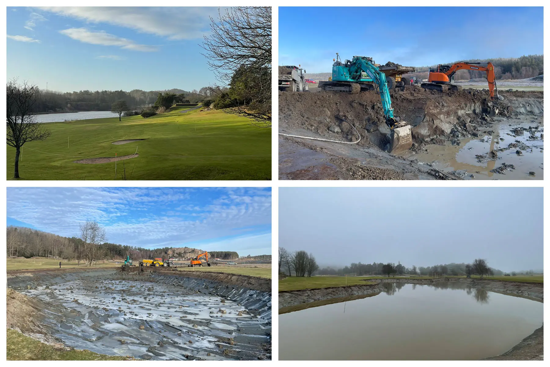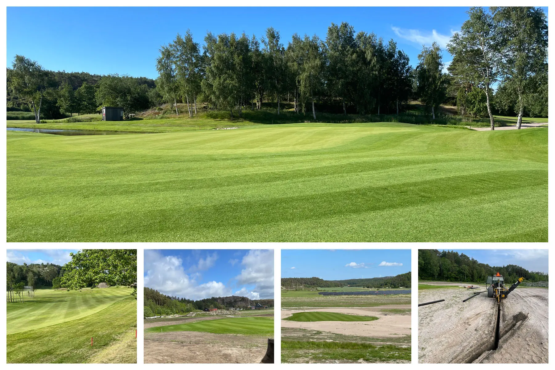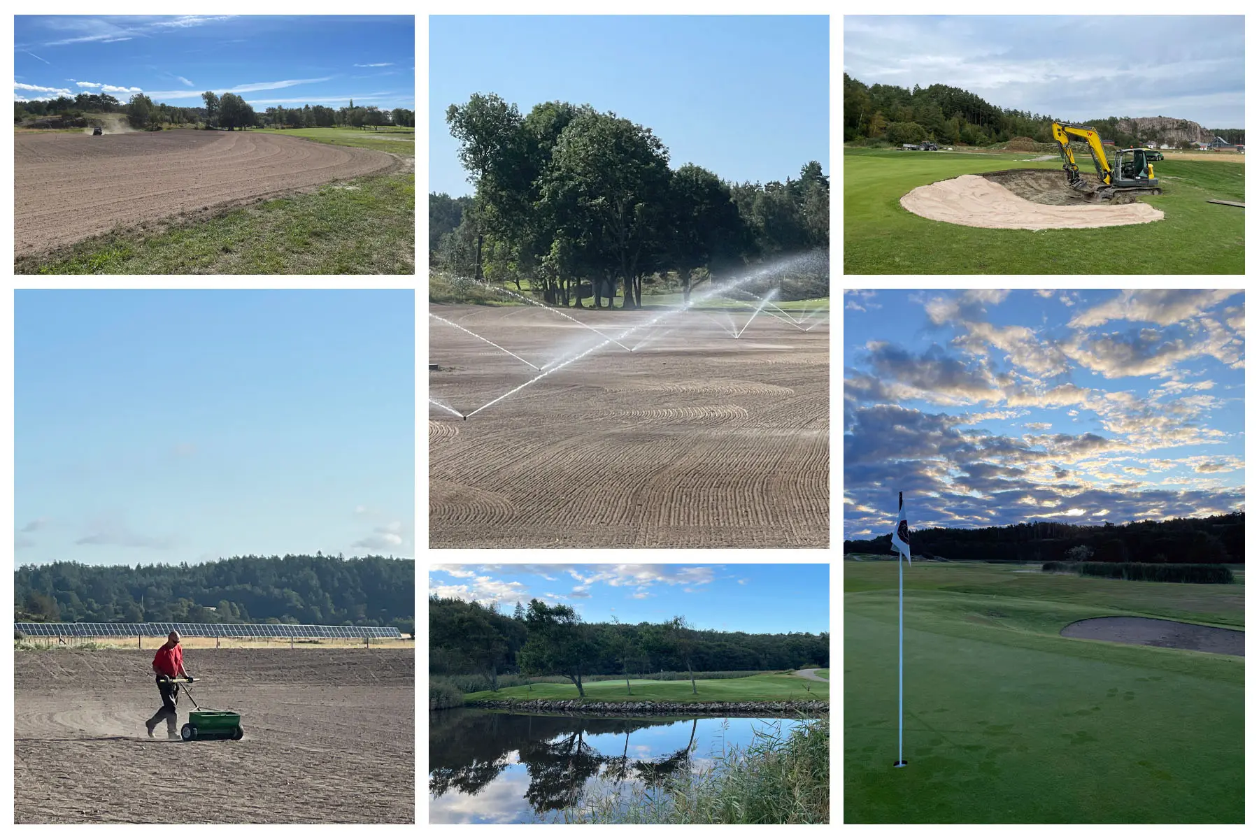 Då är vi snart i mål och skall i år öppna den nya bansträckningen på hål 11 och 12. Förhoppningsvis sker detta i maj om vi har vädrets makter med oss. Ligger några arbetstimmar bakom projektet, så det är en njutning att se vad vi har skapat ur platt och tråkig mark. Vi har gjort allt själva med undantag för inhyrning av maskiner vid de större grävningarna och massförflyttningarna. Detta har givit oss 2 nya greener och greenområden, 4 nya tee, 2 nya dammar, fina stensättningar, nya fairwayytor, nya kullar, nya vägar, ny bevattning, nya dräneringar, nytt landskap och ny del av golfbanan som kommer ge oss nya upplevelser.